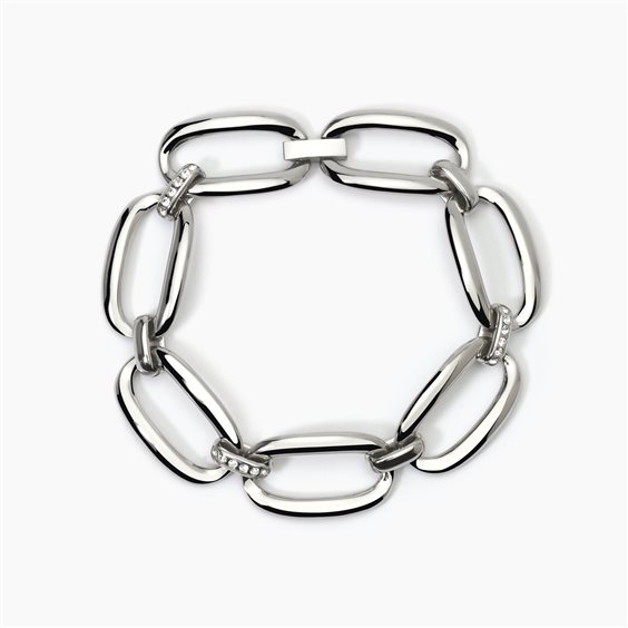 Bracciale in acciaio 316L con maglie allungate 24x14 mm e cristalli bianchi Ø 1.5 mm, lunghezza 18 cm