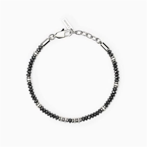 Bracciale in acciaio 316L con dischetti diamantati 2xØ4 mm e dischetti di ematite diamantati 2xØ4 mm, lunghezza regolabile da 19 a 21 cm