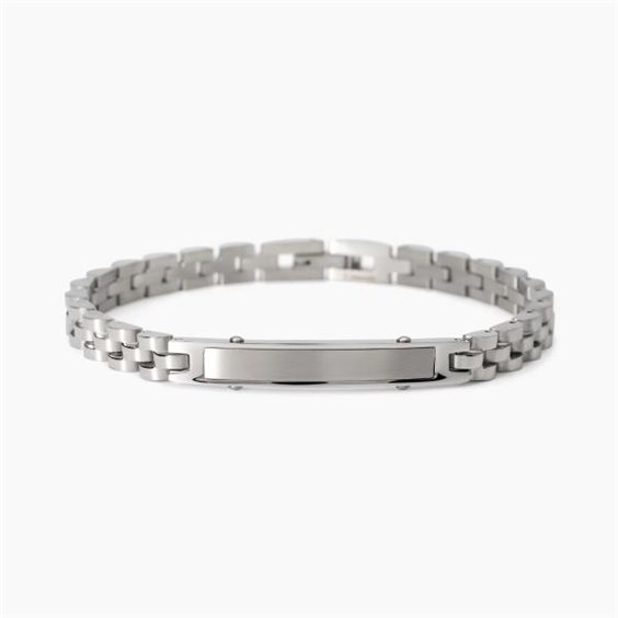 Bracciale in acciaio 304 lucido e satinato con maglia panther 6 mm e piastra centrale 40x6 mm, lunghezza 20 cm