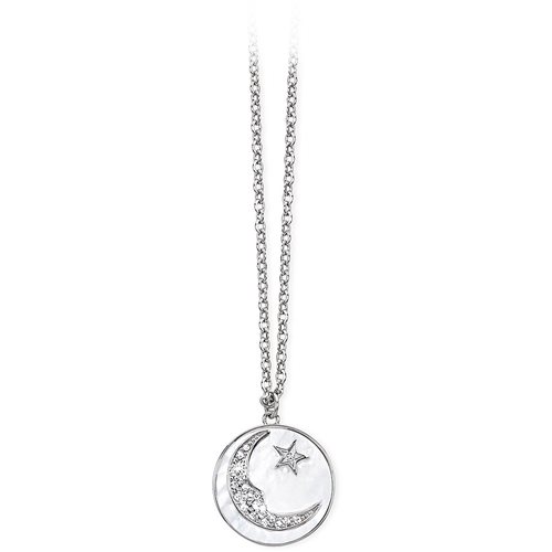 Collana donna , acciaio 316L , girocollo maglia rolò , lunghezza cm 45 regolabile fino a cm 40 , pendente cm 2.5 , diametro cm 2 , madreperla , cristalli bianchi. Immagine indicativa , la confezione può variare di forma e colore.