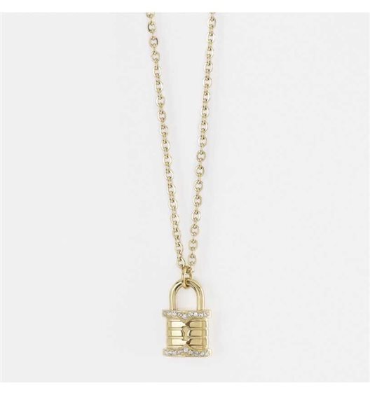 Girocollo in acciaio 316L con pvd gold, catena larghezza 2.30 mm e lucchetto 11x17 mm con cristalli bianchi Ø 1.25 mm lunghezza cm 45
