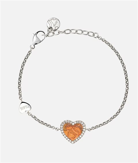 Bracciale in acciaio 316 L con catena Colore: Argento Pendente a forma di cuore in pelle stampa Geo Classic Bordo del cuore con zirconi Lunghezza: 16 cm + 3 cm Catena con cuore in acciaio con logo