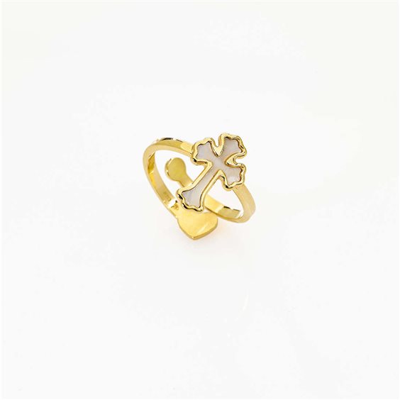 anello argento 925 finitura gialla,croce con madreperla,allargabile