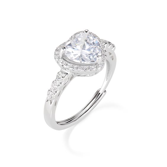 Anello Regolabile Big Diamonds Cuore Bianco - Anello in AG925 con zirconi bianchi - Rodio