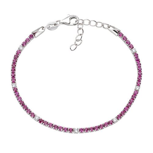 Bracciale in Argento 925 zirconi bianchi e rossi - Rodio - Lunghezza 16 + 3 cm