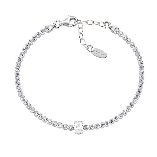 Bracciale Tennis Rodio Zircone Ovale - Bracciale in Argento 925 e zirconi bianchi - Rodio - Lunghezza 16 + 3 cm -