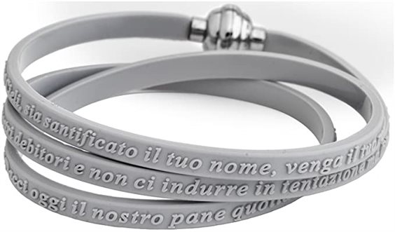 BRACCIALE UNISEX AMEN IN GOMMA GRIGIO PREGHIERA PADRE NOSTRO ITALIANO CM 54