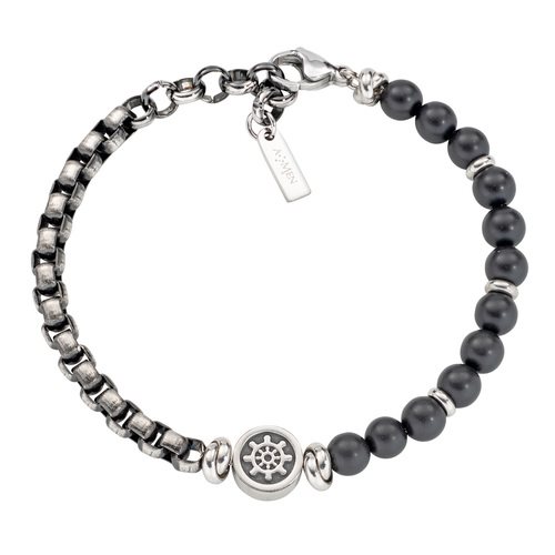 Bracciale in Acciaio e Onice Timone - Bracciale in acciaio 316 e onice nera - Brunito - Lunghezza 18 + 3 cm