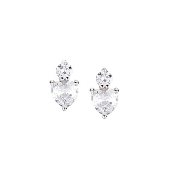Orecchini Diamonds Solitario Cuore Bianco - Orecchini in AG925 con zirconi bianchi - Rodio