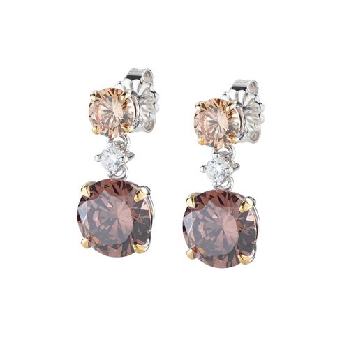 Orecchini Cocktail Zirconi Brown e Champagne - Orecchini in Argento 925 zircone coffe champagne e bianco - Rodio