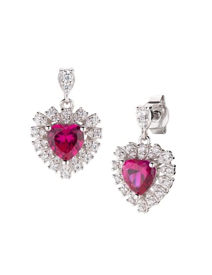 Orecchini Pendenti Stardust Cuore Rosso Orecchini pendenti in argento 925 rodiato con zircone rosso taglio cuore, zirconi bianchi e chiusura a farfallina. L'orecchino ha lunghezza totale 1,5 cm, mentre lo zircone centrale è 7 x 7 mm.