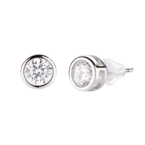 Orecchini Diamonds con Punto Luce Tondo Medio - Orecchini in AG925 con zirconi bianchi - Rodio - Ø 5 mm