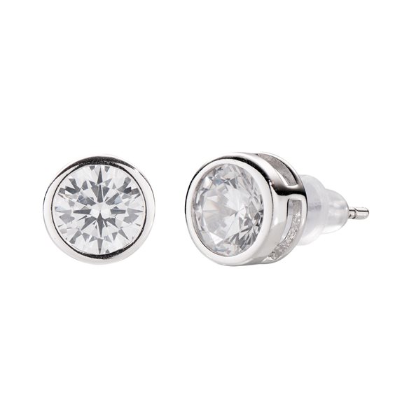 Orecchini Diamonds con Punto Luce Tondo Grande - Orecchini in AG925 con zirconi bianchi - Rodio - Ø 6 mm