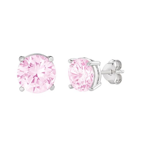Orecchini Rodio Zircone Solitario Rosa - Orecchini Argento 925 zircone rosa Ø 0,8 cm - Rodio