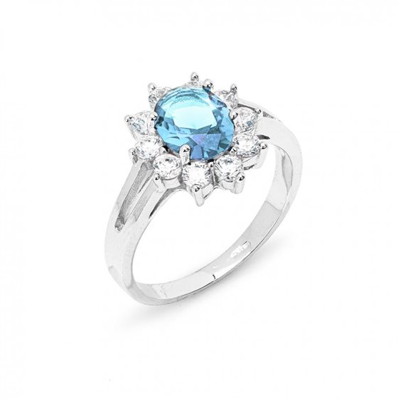 ANELLO AGENTO ZIRCONI LADY ACQUAMARINA