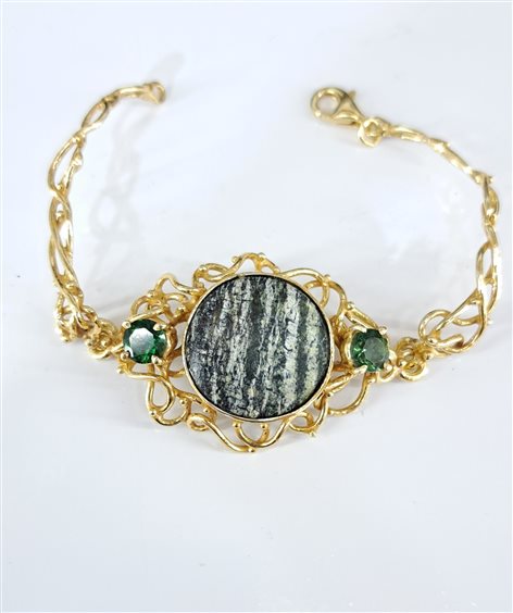BRACCIALE IN ARGENTO CON DIASPRO VERDE CENTRALE E PARICOLARI IN QUARZO IDROTERMALE VERDE. REALIZZATO CON LA TECNICA DELLA PRESSOFUSIONE A CERA PERSA. CREAZIONE UNICA E FATTA A MANO