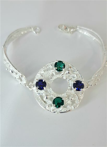 BRACCIALE IN ARGENTO CON QUARZI IDROTERMALE ROSSO. REALIZZATO CON LA TECNICA DELLA PRESSOFUSIONE A CERA PERSA. CREAZIONE UNICA E FATTA A MANO