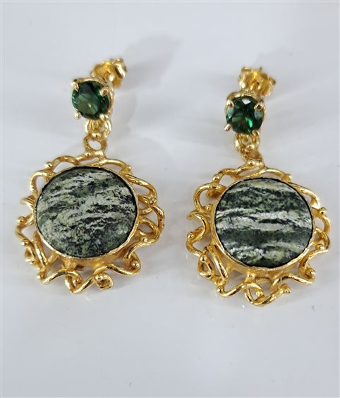 ORECCHINI IN ARGENTO CON PENDENTE DIASPRO VERDE E INSERTO IN QUARZO GIALLO. REALIZZATI CON LA TECNICA DELLA PRESSOFUSIONE A CERA PERSA. CRAZIONE UNICA E FATTA A MANO