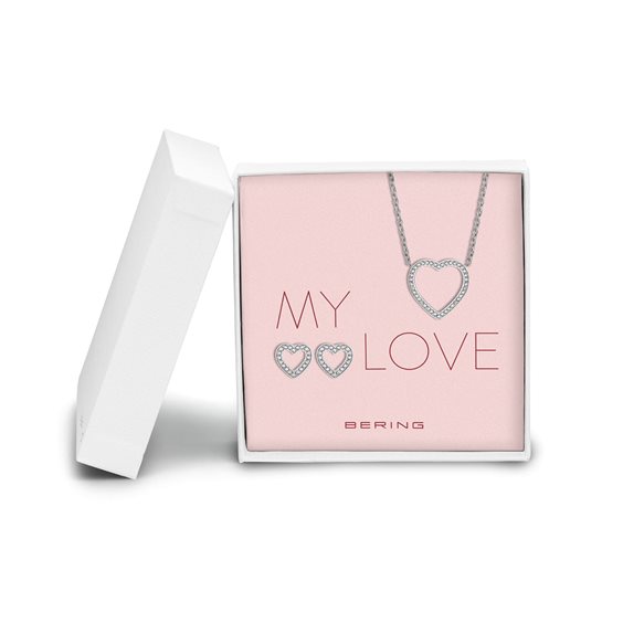 Set "Arctic Symphony | argento brillante | 437-740-silver" La parure è composta da una splendida collana a forma di cuore e piccole pietre di zirconia cubica scintillanti. Per completare il look, BERING ha disegnato degli orecchini coordinati che possono essere indossati in combinazione con la collana per qualsiasi outfit e occasione.