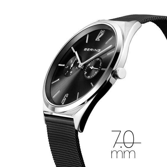 Orologio Bering Ultra Slim. Vetro Zaffiro. Bracciale in acciao maglia Milano nera. Confezione regalo con bracciale in omaggio