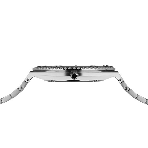 Arctic Sailing. Il vetro zaffiro antigraffio e il rivestimento in ioni metallici rendono il modello estremamente resistente all'acqua (10 atm). Un compagno ideale sia in mare che sulla terraferma. La cassa e il bracciale a maglie larghe sono realizzati in robusto acciaio inossidabile spazzolato, messo in risalto dalla lunetta girevole e dalle lancette e dagli indici illuminati che conferiscono a questo orologio un aspetto potente e sportivo. Un dettaglio nobile è il quadrante Sunray con datario, che brilla alla luce del giorno come il sole sul ghiaccio artico. Garanzia 3 anni.