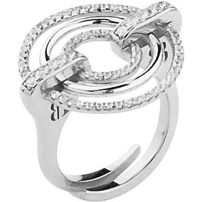 Anello Da Donna Della Collezione Emilì - Anello Regolabile In Argento Rodiato Con Decoro Composto Da Cerchi Concentrici Del Diametro Di Cm 2,5 In Pavè Di Zirconi E Cerchio Centrale Dalla Superficie Liscia