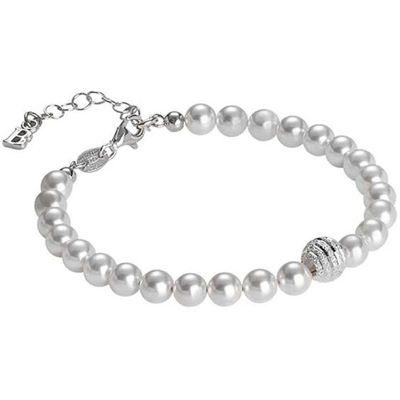 Bracciale Con Filo Di Perle Bianche Con Un Diametro Di Mm 6 E Sfera Centrale Satinata In Argento Rodiato, La Lunghezza È Di Cm 16,5, Estendibile Fino A Cm 20