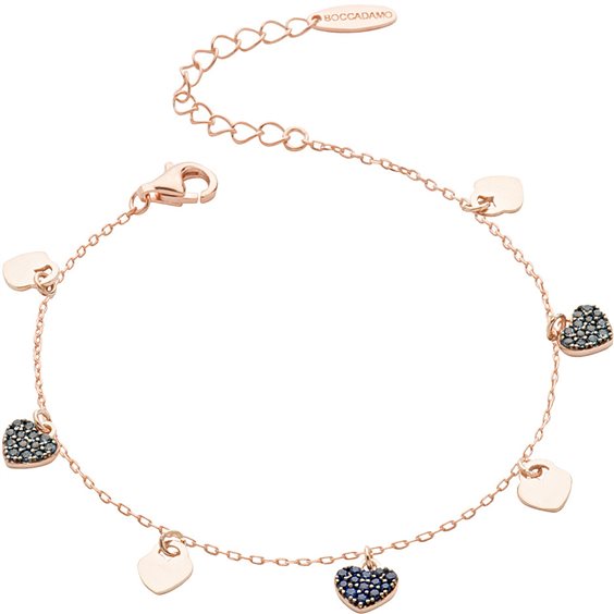 Prodotto: bracciale donna gioielli Boccadamo Gaya GBR001RS Bracciali Da Donna Di Boccadamo Della Collezione Gaya. Gioiello Realizzato In Argento 925 Con Zirconi E Chiusura Con Moschettone. Bracciale Regolabile Placcato Oro Rosa Con Pendenti In Argento A Forma Di Cuore Alternati A Cuori Di Zirconi Dalla Base In Rodio Nero E Pavè Di Zirconi Celesti. Lunghezza: 16 Cm, Estendibile Fino A Cm 19,5. La Referenza È Gbr001Rs Questo bracciale verrà spedito con Scatola Originale Boccadamo
