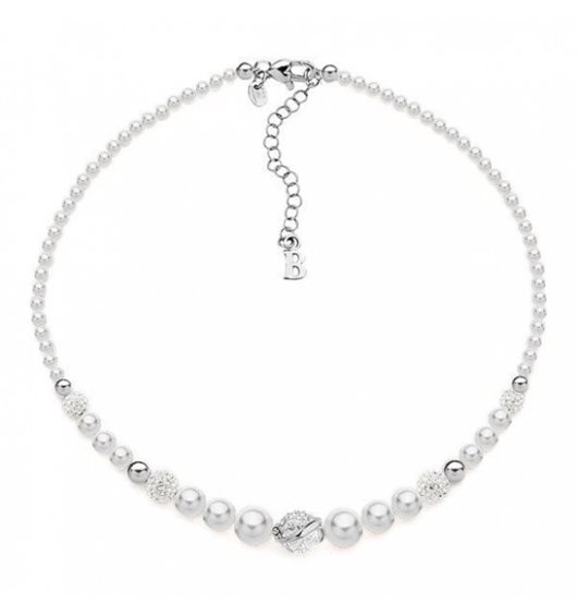 Collana girocollo in argento 925% con sfere di cristalli swarovski bianchi e perle di sintesi. Lunghezza cm 45 accorciabile a piacere fino a cm 40 grazie ad anellini finali. Diametro perle da mm 4 / mm6/ 8/10 Diametro sfere argento mm 5/mm6 Diametro sfere swarovski mm6/mm8/mm10