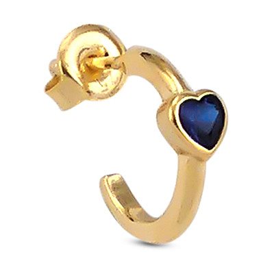 Mono orecchino in argento placcato oro giallo con zircone incastonato colore blu montana taglio cuore. Misure: lunghezza cm 1,4 Chiusura: a farfalla