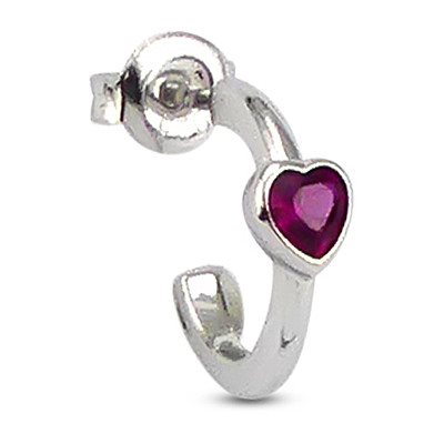 Mono orecchino in argento con zircone incastonato colore rubino taglio cuore. Misure: lunghezza cm 1,4 Chiusura: a farfalla
