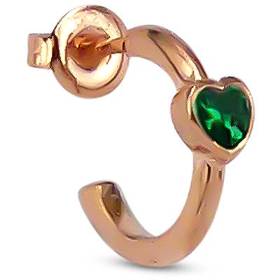Mono orecchino in argento placcato oro rosa con zircone incastonato colore verde smeraldo taglio cuore. Misure: lunghezza cm 1,4 Chiusura: a farfalla