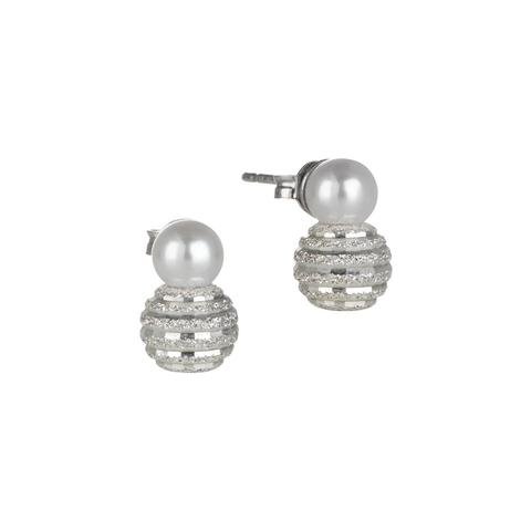 Orecchini a lobo con perno a farfalla e perla bianca Swarovski 8diametro mm 6) e boule satinata in argento (diametro mm 8).