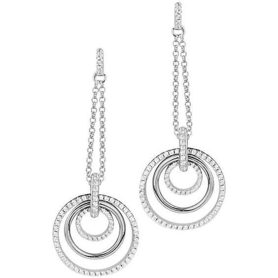 Orecchini pendenti, lunghezza cm.5 con cerchi alternati cristalli e argento dal diametro di mm.21.