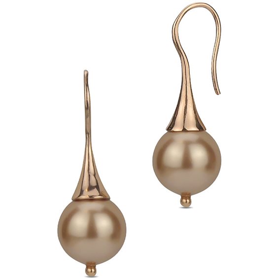 Orecchini monachella in argento placcato oro rosa con perla pendente color rose gold. Misura: lunghezza cm 3 Dimensione: diametro perle mm 6 e mm 10 Chiusura: monachella