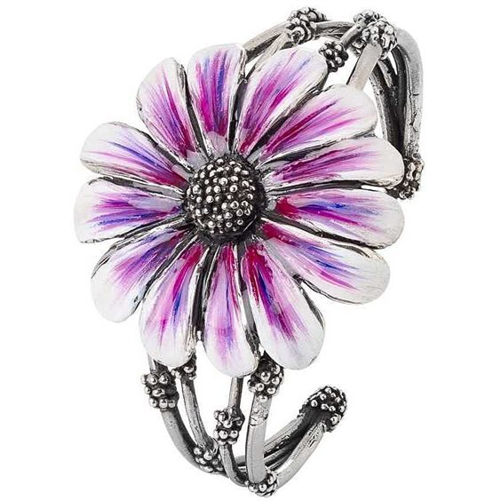 Bracciale Da Donna Di Bottega Boccadamo. Gioiello Realizzato In Argento 925 Brunito Rigido A Fascia In Argento Brunito Con Margherita Dipinta A Mano Nelle Sfumature Del Viola Con La Tecnica Della Micro Pittura. Dimensione: Margherita Cm 5 Misure: Bracciale Diametro Interno Cm 6,2, Altezza Cm 4,5. Produzione: Lavorato A Mano In Italia