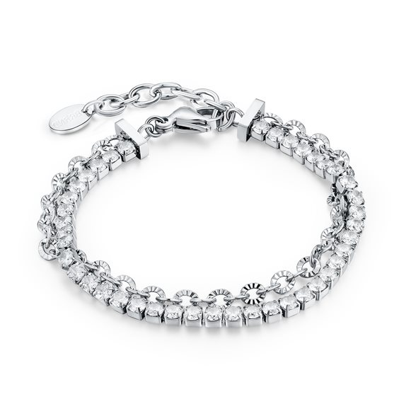 Bracciale Tennis 3mm con catena flower - Bracciale tennis da 3mm con catena flower Lunghezza bracciale: 16 cm + 3 cm di estensione Materiale: Acciaio inossidabile, ipoallergenico