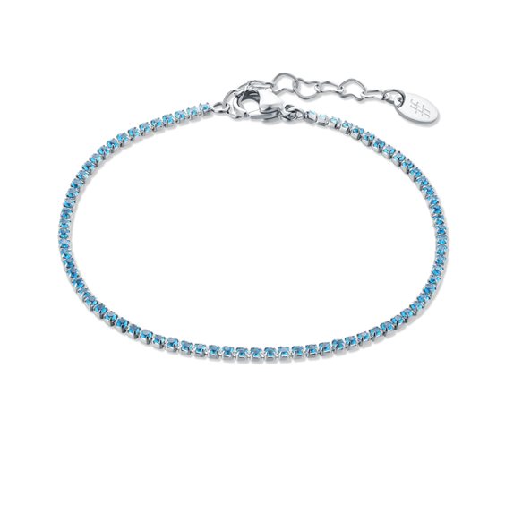 Bracciale Tennis da Donna con Micro Cristalli Colorati da 1,5 mm Lunghezza: 16 cm + 3 cm di estensione, con catenina a cuore Tipologia cristalli: Cubic Zirconia Materiale: acciaio inossidabile ed ipoallergenico