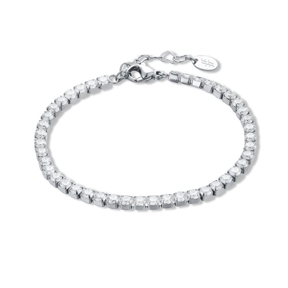 Bracciale Tennis da Donna con Maxi Cristalli Colorati da 3 mm Lunghezza: 16 cm + 3 cm di estensione, con catenina a cuore Tipologia cristalli: Cubic Zirconia Materiale: acciaio inossidabile ed ipoallergenico