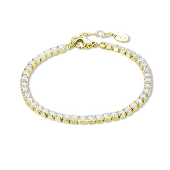 Bracciale Tennis da Donna con Maxi Cristalli Colorati da 3 mm Lunghezza: 16 cm + 3 cm di estensione, con catenina a cuore Tipologia cristalli: Cubic Zirconia Materiale: acciaio inossidabile ed ipoallergenico