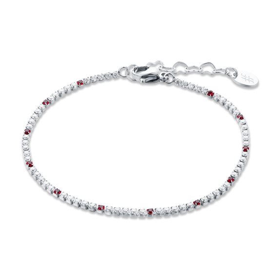 Bracciale Tennis da Donna con Micro Cristalli e Punti Colore da 1,5 mm Lunghezza: 16 cm + 3 cm di estensione, con catenina a cuore Tipologia cristalli: Cubic Zirconia Materiale: acciaio inossidabile ed ipoallergenico