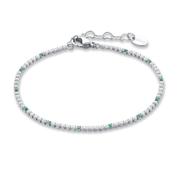 Bracciale Tennis da Donna con Micro Cristalli e Punti Colore da 1,5 mm Lunghezza: 16 cm + 3 cm di estensione, con catenina a cuore Tipologia cristalli: Cubic Zirconia Materiale: acciaio inossidabile ed ipoallergenico