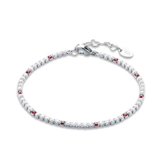 Bracciale Tennis Classico da Donna con Micro Cristalli e Punti Colore da 2 mm Lunghezza: 16 cm + 3 cm di estensione, con catenina a cuore Tipologia cristalli: Cubic Zirconia Materiale: acciaio inossidabile ed ipoallergenico