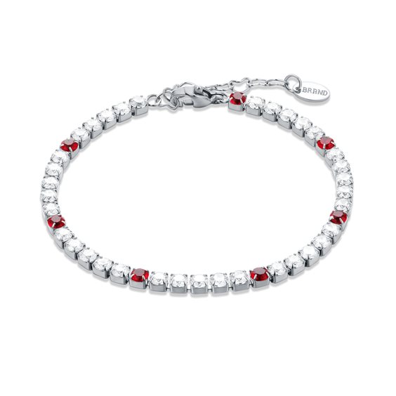 Bracciale Maxi Tennis da Donna con Cristalli e Punti Colore da 3 mm Lunghezza: 16 cm + 3 cm di estensione, con catenina a cuore Tipologia cristalli: Cubic Zirconia Materiale: acciaio inossidabile ed ipoallergenico