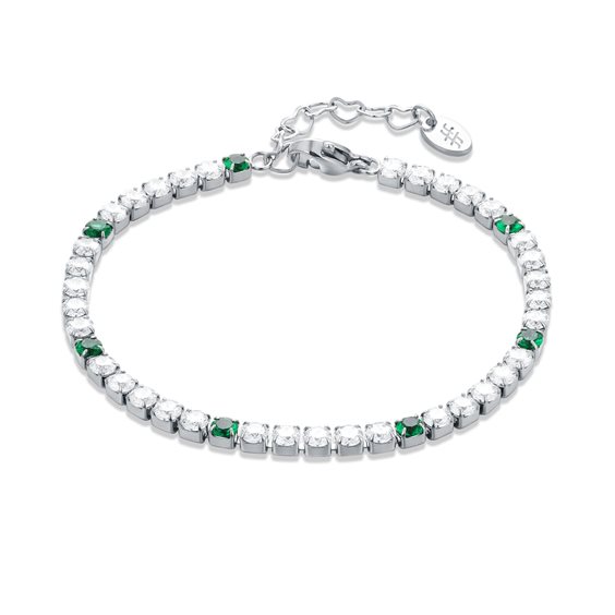 Bracciale Maxi Tennis da Donna con Cristalli e Punti Colore da 3 mm Lunghezza: 16 cm + 3 cm di estensione, con catenina a cuore Tipologia cristalli: Cubic Zirconia Materiale: acciaio inossidabile ed ipoallergenico