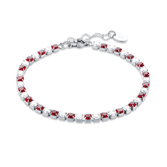 Bracciale Tennis a Colore Alternato da Donna con Maxi Cristalli da 3 mm Lunghezza: 16 cm + 3 cm di estensione, con catenina a cuore Tipologia cristalli: Cubic Zirconia Materiale: acciaio inossidabile ed ipoallergenico