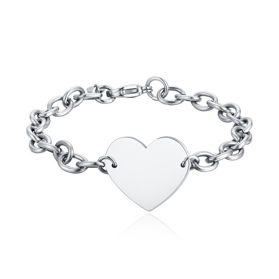 Bracciale catena con cuore Materiale: acciaio inossidabile, ipoallergenico testato per il nichel Grandezza cuore: 2 cm Lunghezza bracciale: 17 cm
