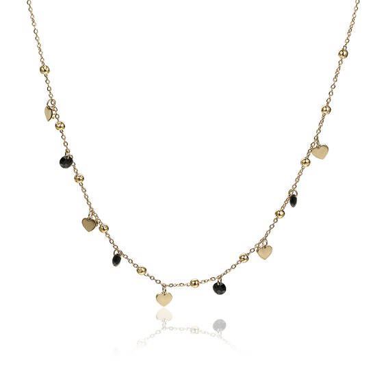 Collana Cuori Oro e Cristalli Neri Materiale: acciaio ipoallergenico e inossidabile lunghezza 42+ 5 cm di estensione