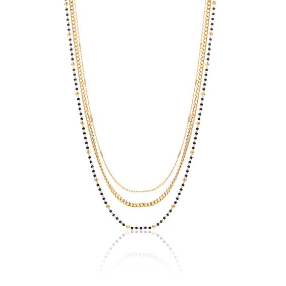 Collana triplo filo con perline miyuki nere PVD dorato Lunghezza 40, 42, 45 + 8 cm di estensione. Materiale: Acciaio inossidabile, ipoallergenico e testato per il nichel