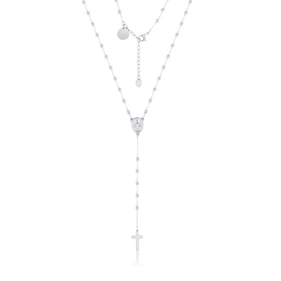 Collana rosario versione acciaio Materiale: acciaio inossidabile Lunghezza collana: 7 cm +27 cm + 5 cm di estensione